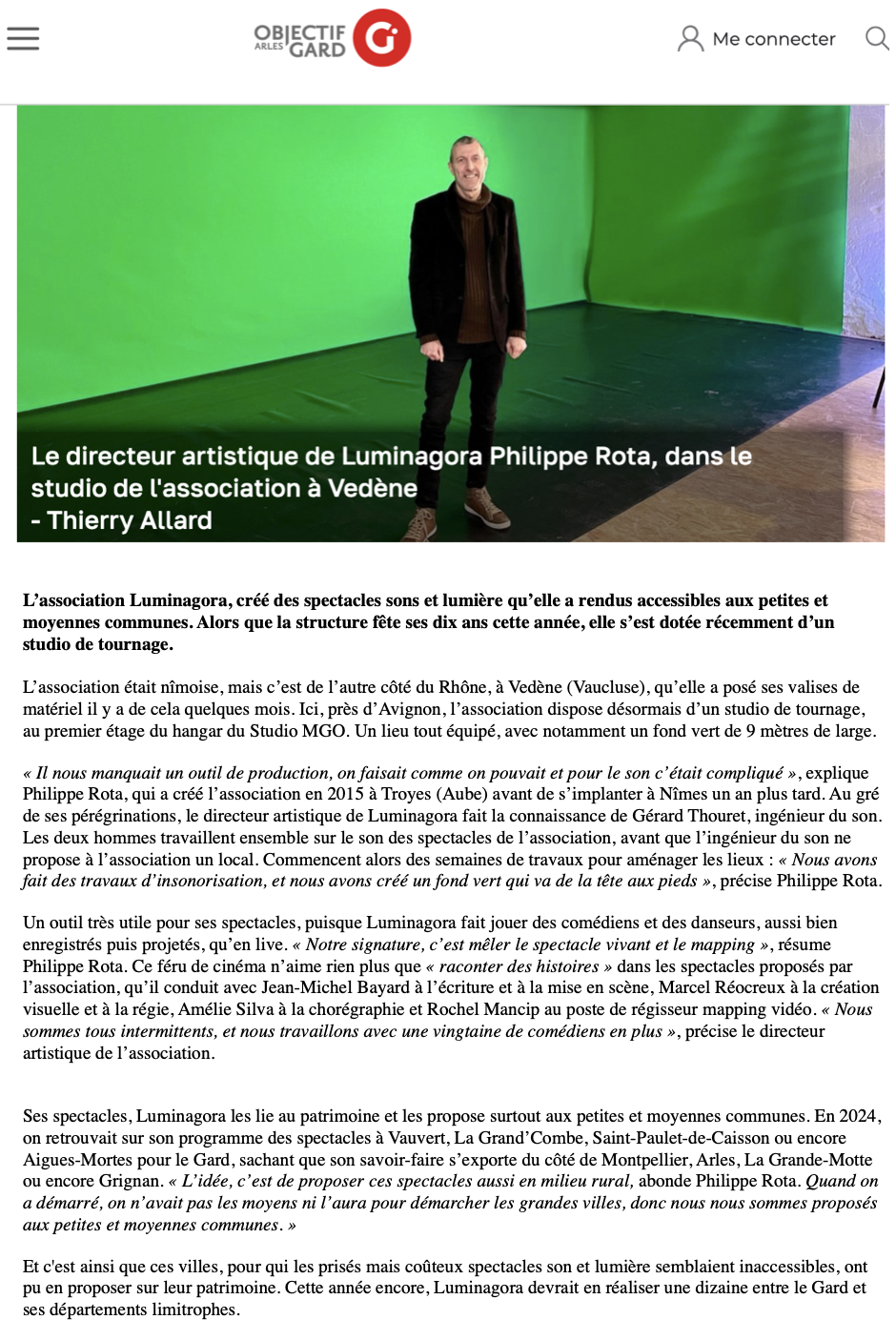La presse en parle, Objectif Gard revient sur l'instalation de notre studio à Vedène dans le Vaucluse.