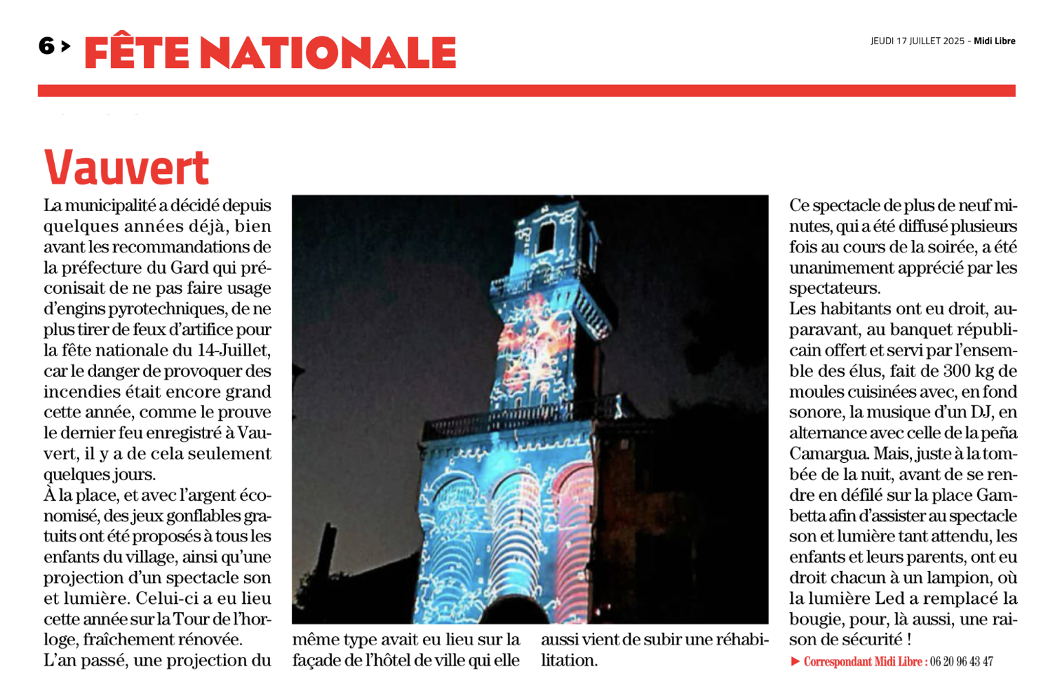 "CELEBRATION" un concept proposé aux communes qui souhaitent remplacer un feu d'artifice (suite aux arretés préfectoraux qui limitent le tir de feux dans les communes à risques - sécheresses et autres) par un spectacle mapping vidéo en projection sur une façade de bâtiment (églises, collégiales, Mairies et autres). Une démarche innovante qui peut renouveler les animations liées aux festivités du 14 juillet comme ici à Vauvert en 2025 mais aussi l'année précédente. Transition réussie avec succès.